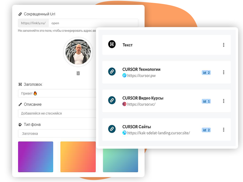 Настройке свою страницу LinkLy с помощью нашего редактора и сделайте ее по-настоящему уникальной.